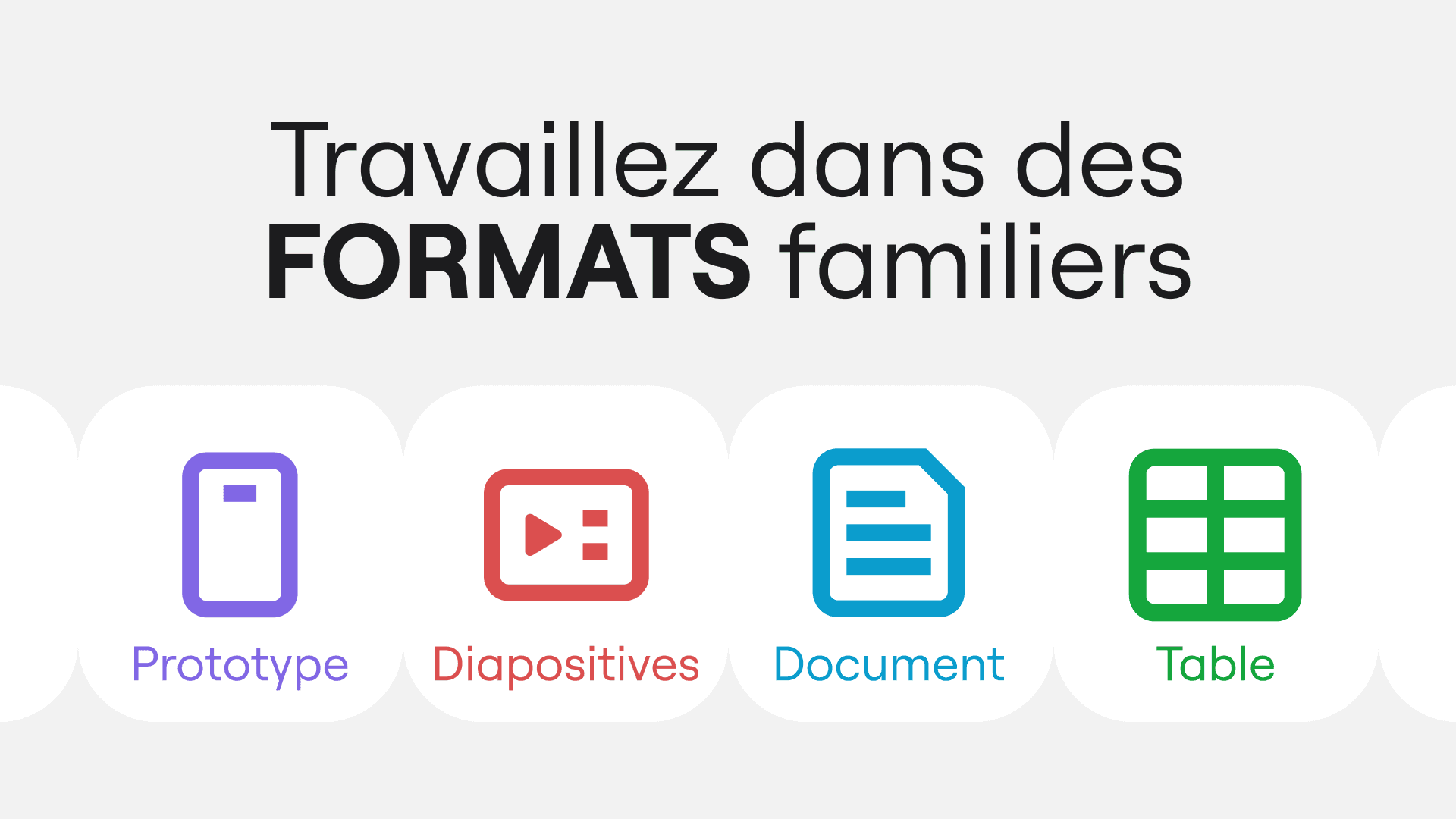 Transformez vos idées en plans structurés avec les documents, tables, diapositives, diagrammes, etc.
